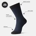 Er du til stilfuldt og klassisk design med et tvist, så er Midnight Blue bambusstrømper fra IQ SOX® lige noget for dig. Her får du den klassiske sorte strømpe suppleret med en dyb og sofistikeret blå farve, der som himmelbuen er både rolig, harmonisk og mægtig. Med serien Midnight Blue får du: