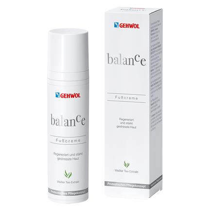 Et probiotisk plejekoncept danner grundlaget for GEHWOL balance fodcreme til hud, stresset af ydre påvirkninger hver dag. Hudbarriereforstærkeren: Det probiotiske aktive stof BIOTILYS® med lactobacillus pentosus aktiverer den naturlige reproduktion af sunde bakterier i hudfloraen og genopretter deres balance. Den regenererer og styrker den naturlige hudbarriere og beskytter huden. Fugtighedscremen: Hvid teekstrakt tilfører huden fugt og beskytter den mod fugttab. Plejeboosteren: Sesamolie nærer huden og efterlader den mærkbart mere glat og smidig. Balance Care fordeles let, absorberes hurtigt og fedter ikke. Den er vegansk, PEG-fri og indeholder ingen parabener eller silikoneolier.