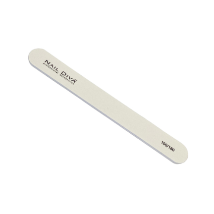 - To sider i én fil: 100 grit-siden bruges til at reducere tykkelsen på hårde negle, mens 180 grit-siden er ideel til at glatte efter og forme neglen.
