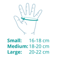 Du finder din størrelse ved at måle omkredsen af håndryggen med et målebånd.